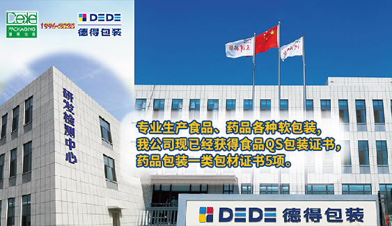 天津德得藥品包裝有限公司,始建于1996年,集開發、生產、銷售于一體,專業生產食品、藥品包裝用復合膜袋、藥用鋁箔、藥用低密度聚乙烯膜袋。2019年11月由天津德得藥品包裝有限公司投資興建的德得包裝材料河北有限公司正式開業;總投資人民幣1.5億元,規劃占地50畝(一期30畝)。公司專業生產醫藥、食品及其他各類軟包裝。目前公司具有全國工業產品生產許可證、國家藥品監督管理局藥品審評中心已備案為A狀態的7個品種藥包材登記號: